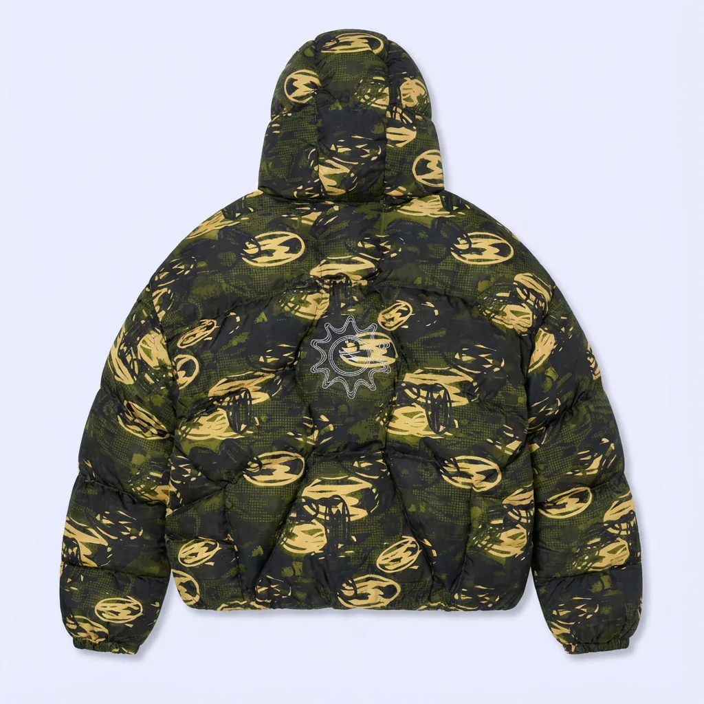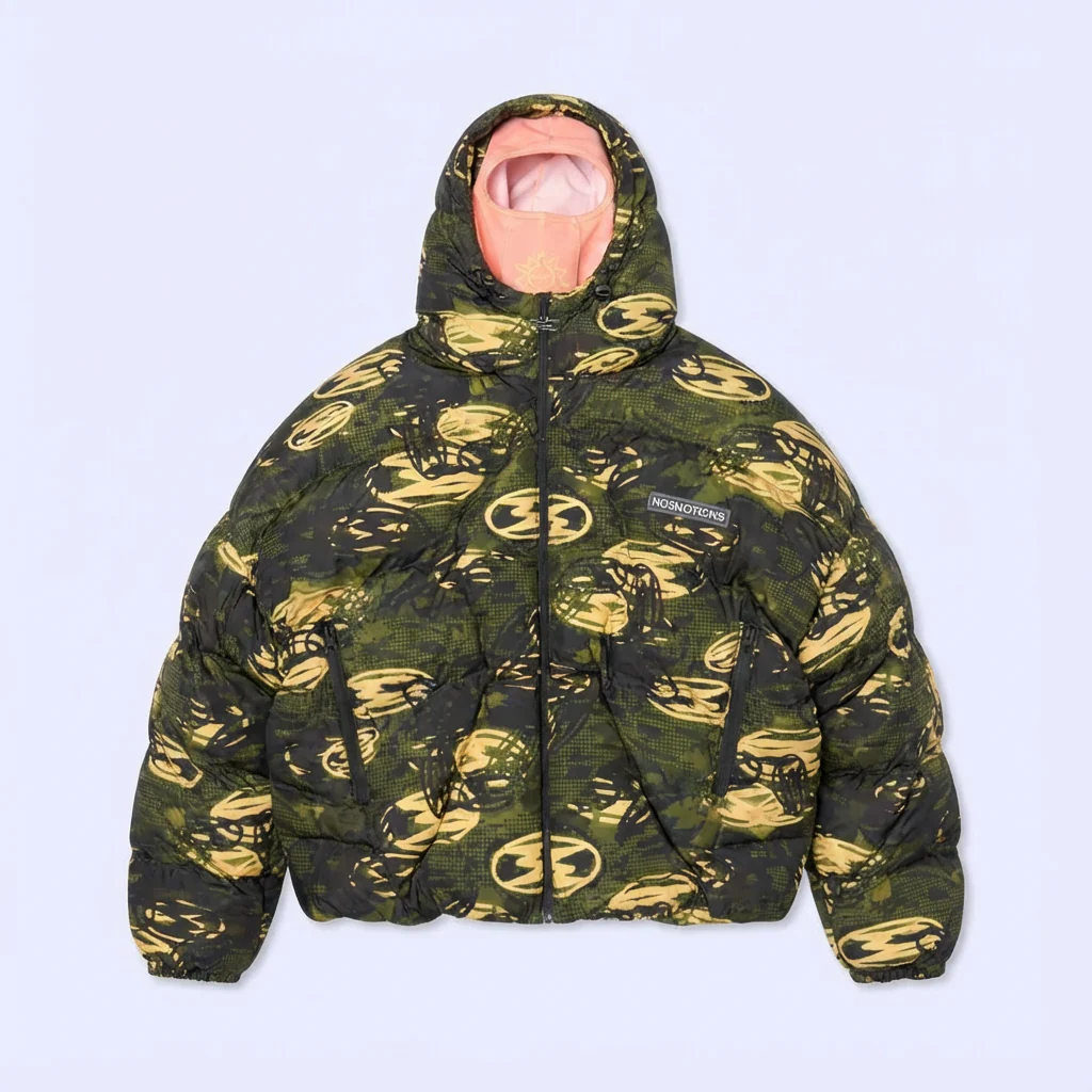 The Noemotions Balaclava Puffer Green Camo brings bold camouflage style together with advanced streetwear innovation. As part of the Noemotions New Drop, this heat-sensitive puffer actively responds to temperature changes, creating a striking visual effect that elevates any cold-weather outfit. Crafted from 100% premium polyester, it delivers lightweight warmth, durability, and everyday comfort while maintaining a powerful, structured silhouette.