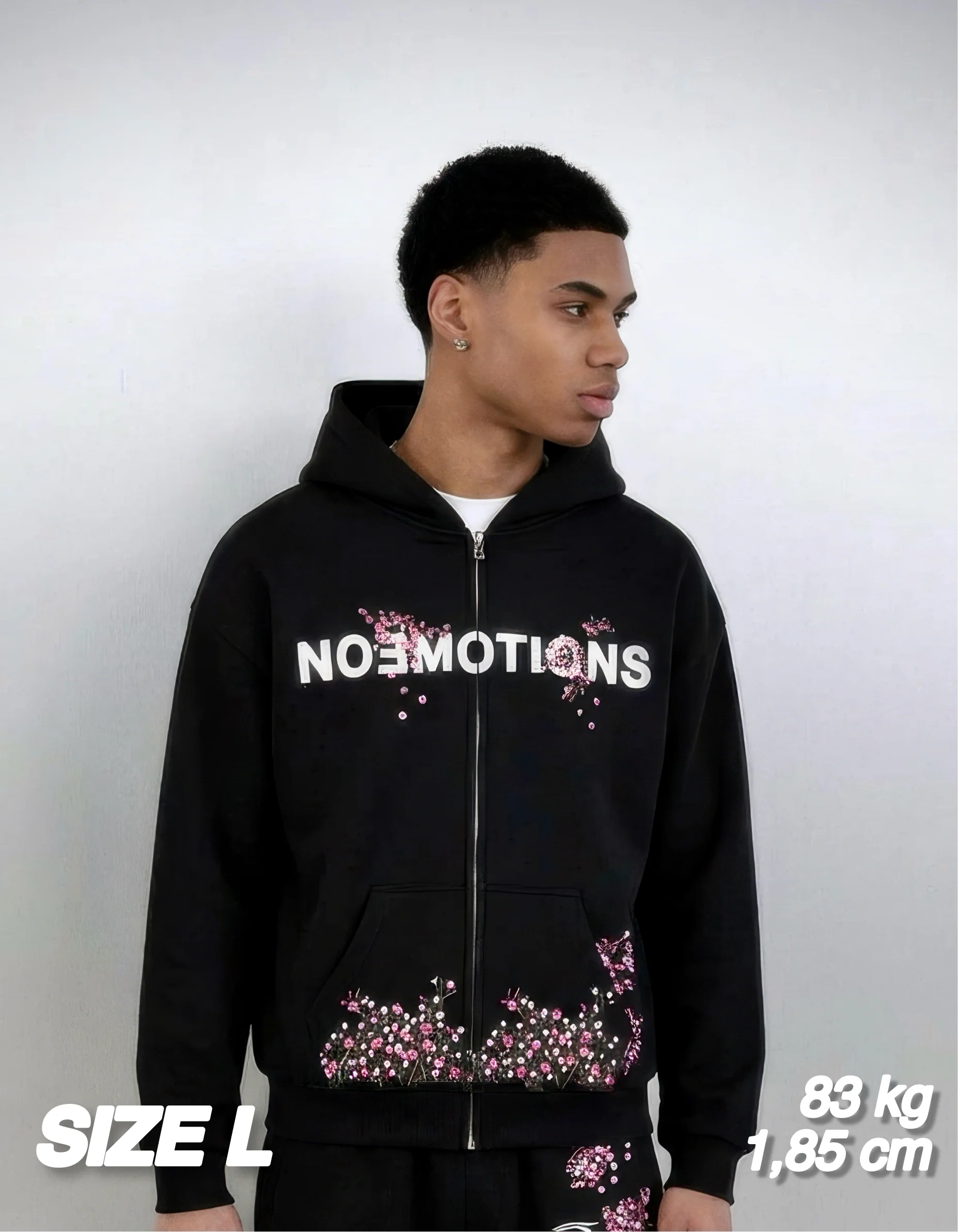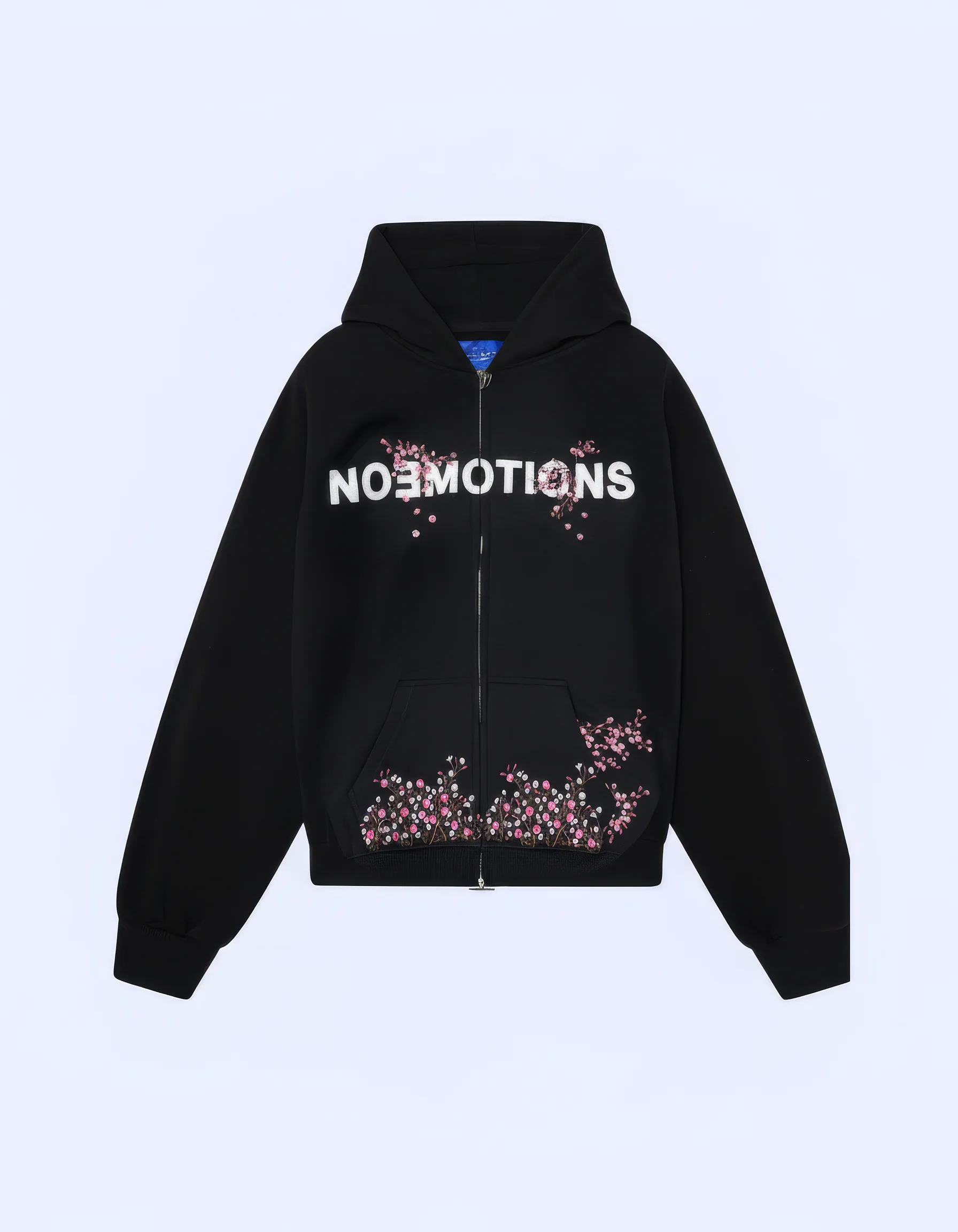 The Noemotions Blossom Zip Hoodie blends relaxed comfort with refined streetwear design. Created for everyday wear, this hoodie delivers a clean silhouette elevated by artistic blossom detailing that makes it stand out without feeling overdone.