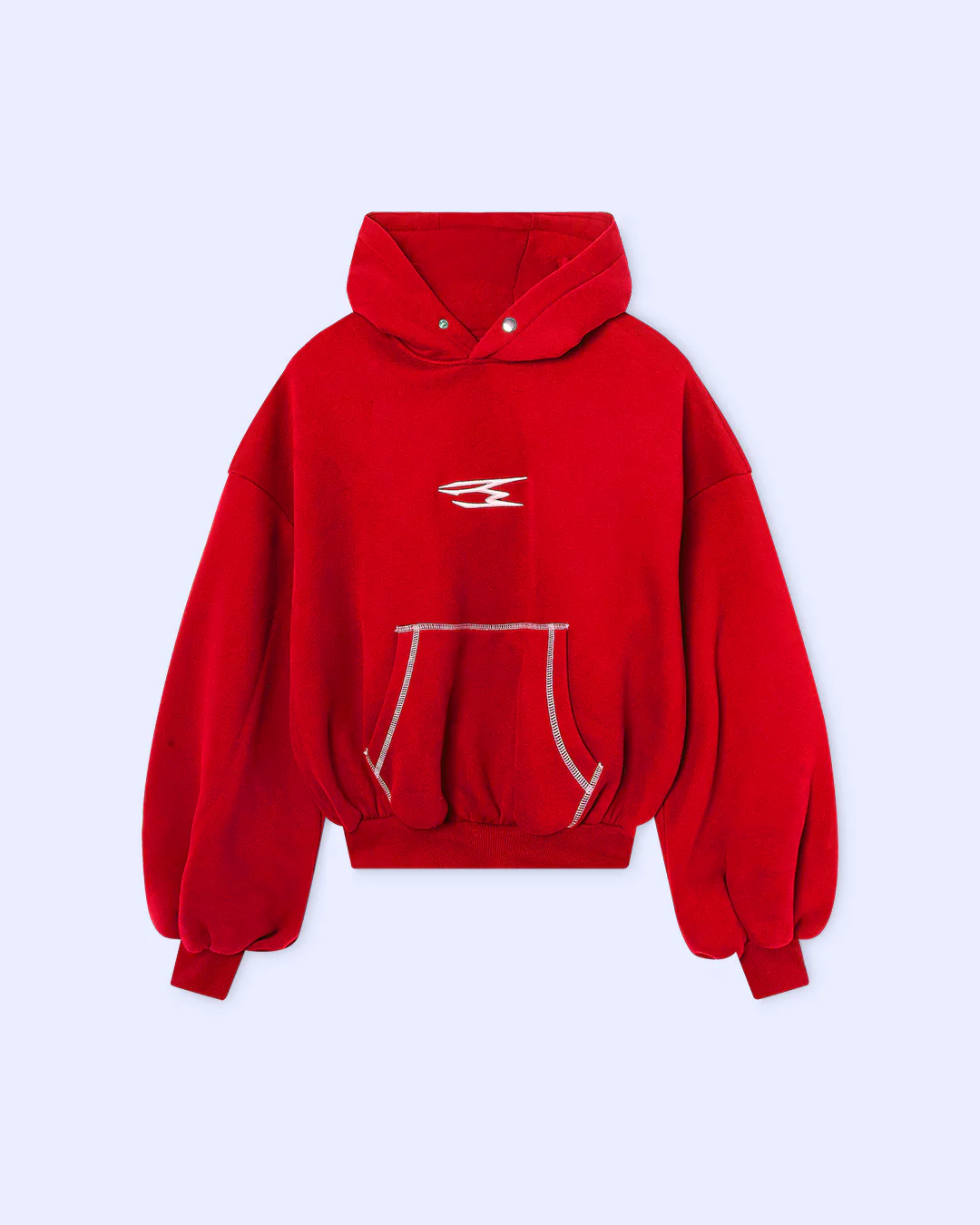 Crafted from 100% heavyweight cotton fleece, this hoodie features a soft brushed interior that keeps you warm while maintaining a clean, structured shape. The rich red colorway adds energy and confidence, making it a standout piece in any streetwear rotation.