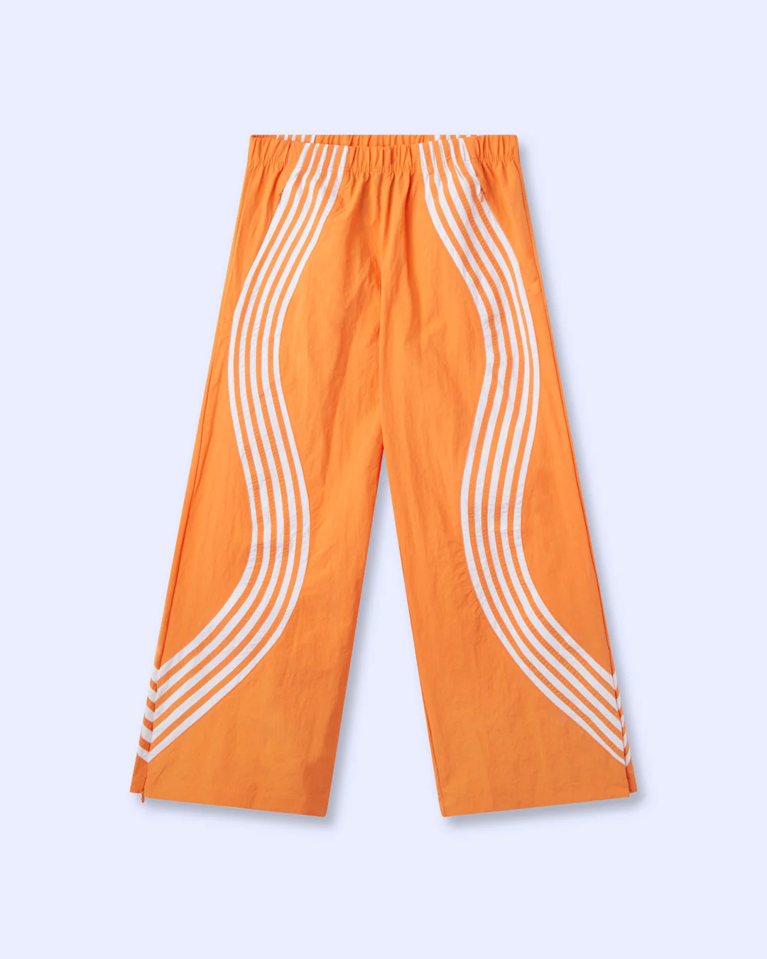 The Noemotions Stripe Pants Orange make a bold statement through movement, color, and technical construction. Designed with flowing white wave stripes across a vivid orange base, these pants deliver standout energy while keeping a clean, modern silhouette.